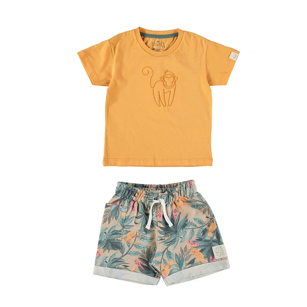 Conjunto Jardineira Em Tecido e Blusa Meia Malha