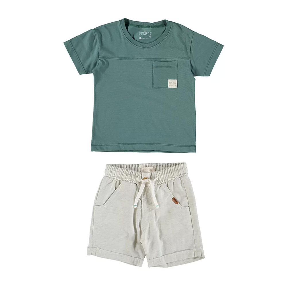 Conjunto Meia Malha E Tecido Plano Verde Escuro