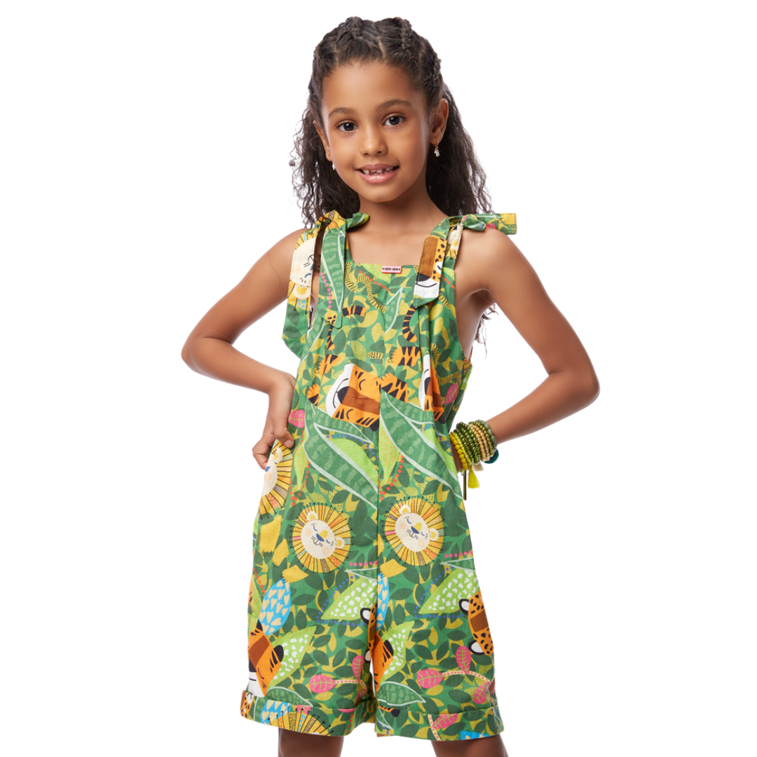 Macaquinho Viscose Floral Laranja E Rosa Com Faixa Cabelo